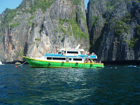 次に、反対側の湾、映画『ザ・ビーチ』の舞台になったマヤ湾へ向かった。外洋に出ると大シケになる。ゆっくり船を走らせて湾の中に入った。さすがに有名な場所なので、大型船やヨットも来ていた。湾の奥にザ・ビーチが見えた。上陸するように指示したら、
